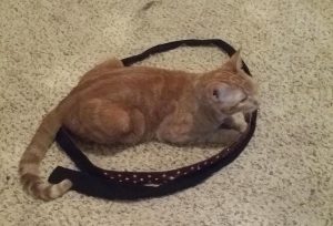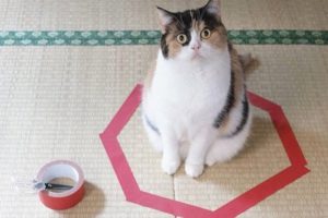Employing the scientific method, the man set out to conduct an experiment of his own and test it on his cat. First, he bought some red tape and places a circle (ish) shape on the floor. Then…he waited.
