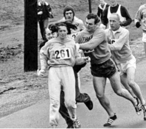 Switzer first ran the Boston Marathon in 1967, when women were not allowed to compete. A Syracuse University journalism student, she entered the race under her initials, K.V. Switzer. She claims that there were not any official rules written that said only men could enter the race.