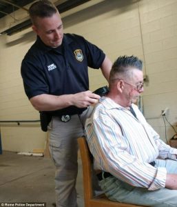 Officer Aaron Page was patrolling downtown Rome, New York when he spotted a homeless man who was ‘down on his luck’. Page started talking to the man named Bobby and learned that he desperately wanted to clean himself up with a warm shower and a haircut.