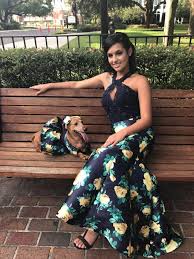 Florida high school senior Brenda Sierra, 18, decided to make a matching dress for dachshund, Sasha, using the same fabric as her own prom dress.