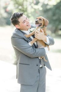 If you’re looking for an adorable way to make your wedding photos stand out, take note of the props this Pennsylvania couple chose to pose with on their big day. Matt and Sarah Crain love spending time with their three rescue dogs, and Matt even proposed while they were out on a walk with the pups. The theme of puppy love continued into their wedding planning; Sarah came up with the idea to take post-ceremony photos with six pups who were in need of forever homes.