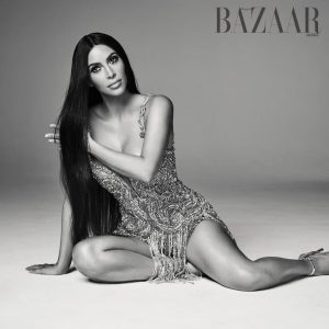 Kim channeled one of her style icons, Cher, for the most recent issue of Harper’s BAZAAR Arabia. Doesn’t she do it so well? Look at that long hair and doe-eyed stare!