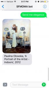 San Francisco Museum of Modern Art (SFMOMA) recently rolled out a new feature called “Send Me” that allows anyone to text a request to see something and receive a picture of a piece of art depicting that thing in return.
