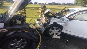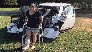 “It happened so fast,” said driver Brandy Guin, who was on her way to her grandparent’s home to pick her children up when a car driving in the opposite direction crossed over the divider and hit her head-on. “They approximated we were going about 45 miles per hour, and I came to a dead stop in three feet. I bent the brake pedal; I was pushing so hard trying to get it to stop.”
