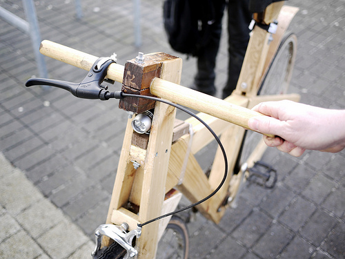 The mechanics he chose are quite simple, so it has no gears and only one V-brake, but certainly adequate for his daily commute to and from class.