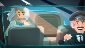 “That’s a great idea!” says Einstein. “Let’s switch places then!”